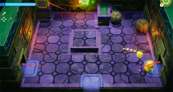2、从门里进去,把石头移开后互动旁边的道具然后进去;