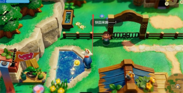 2、往下边走找到【咕咕鸡1】,抓住它扔进NPC背后的围栏里;