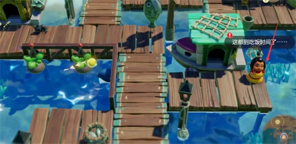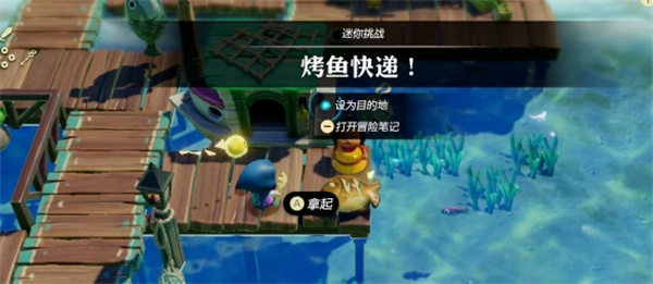 1、前往海滨村对话头上有气泡的NPC触发迷你挑战【烤鱼快递】;