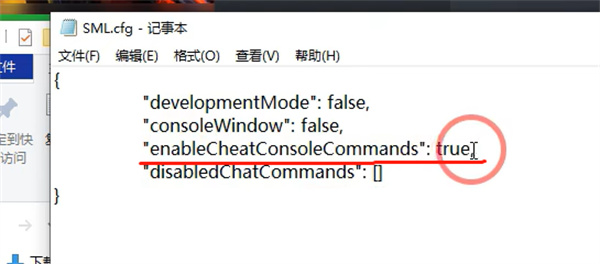 3、将"enableCheatConsoleCommands":false改为"enableCheatConsoleCommands":true,保存关闭文件。