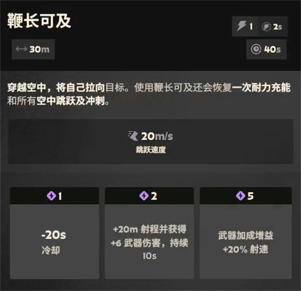 2技能需借助目标作跳板,并会重置二级跳和冲刺。可先进行二级跳,再使用2技能跳,以增加移动距离,随后用大招拉敌,再以1技能攻击。