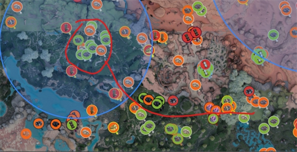 2. 从3号出生点开建,初始位置石灰多,玩家在3号出生点开局也可以靠地基往东一路铺过去。