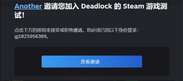 3、几分钟后你就会收到deadlock的steam游戏测试资格,点击查看邀请。