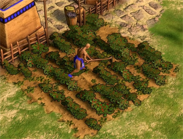 4. 种田要花费资源种下一片田,然后从上面采集无限的食物,同时只能一个单位进行采集。不同种族种田所需要的资源都不一样,希腊和北欧种田要花费75木,埃及要花费70金,亚特兰蒂斯要花费150木。