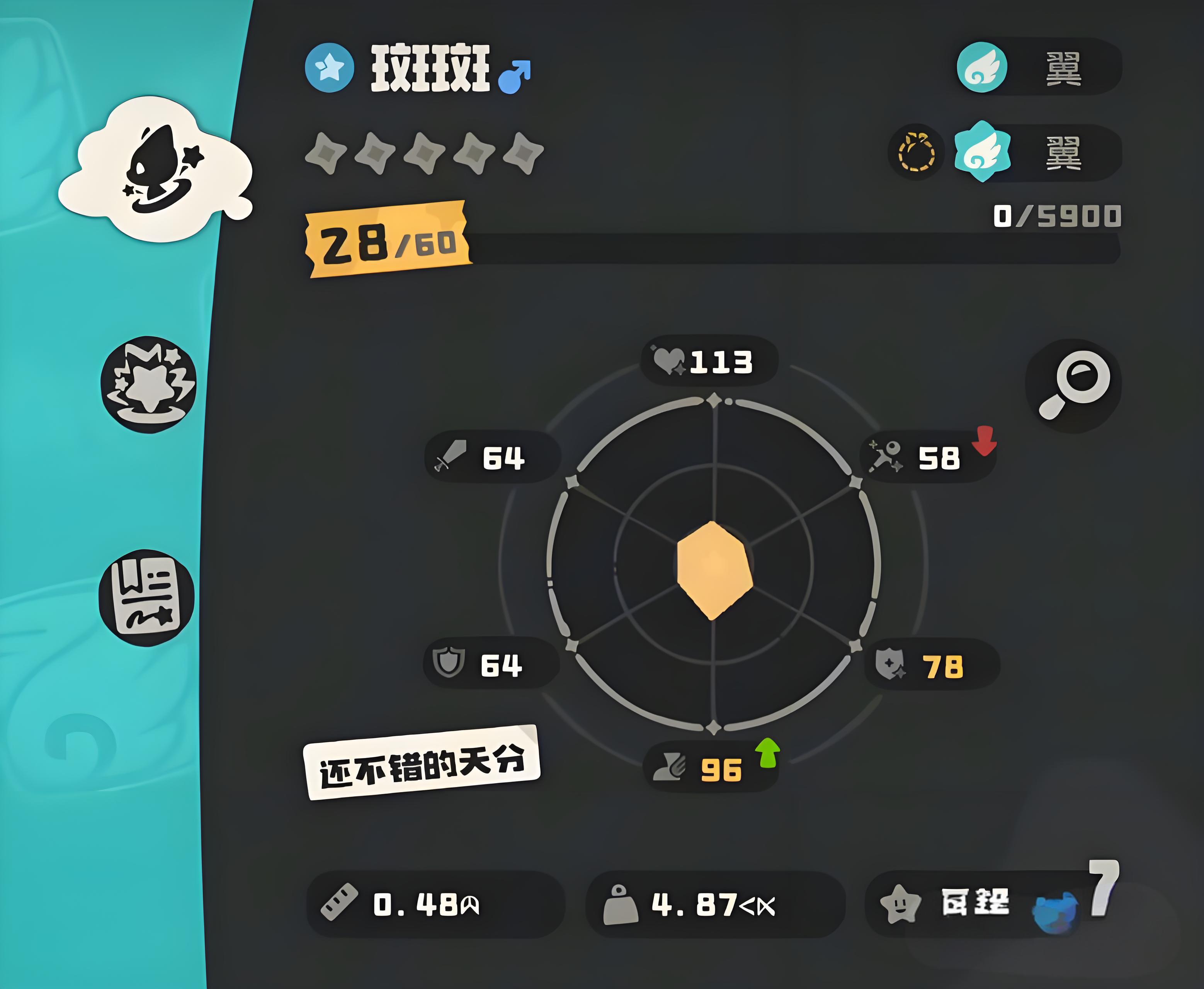2、种族值为449不算高也不低,属性分布均衡无明显短板,速度属性表现突出,契合飞行类精灵普遍的速度优势特点。