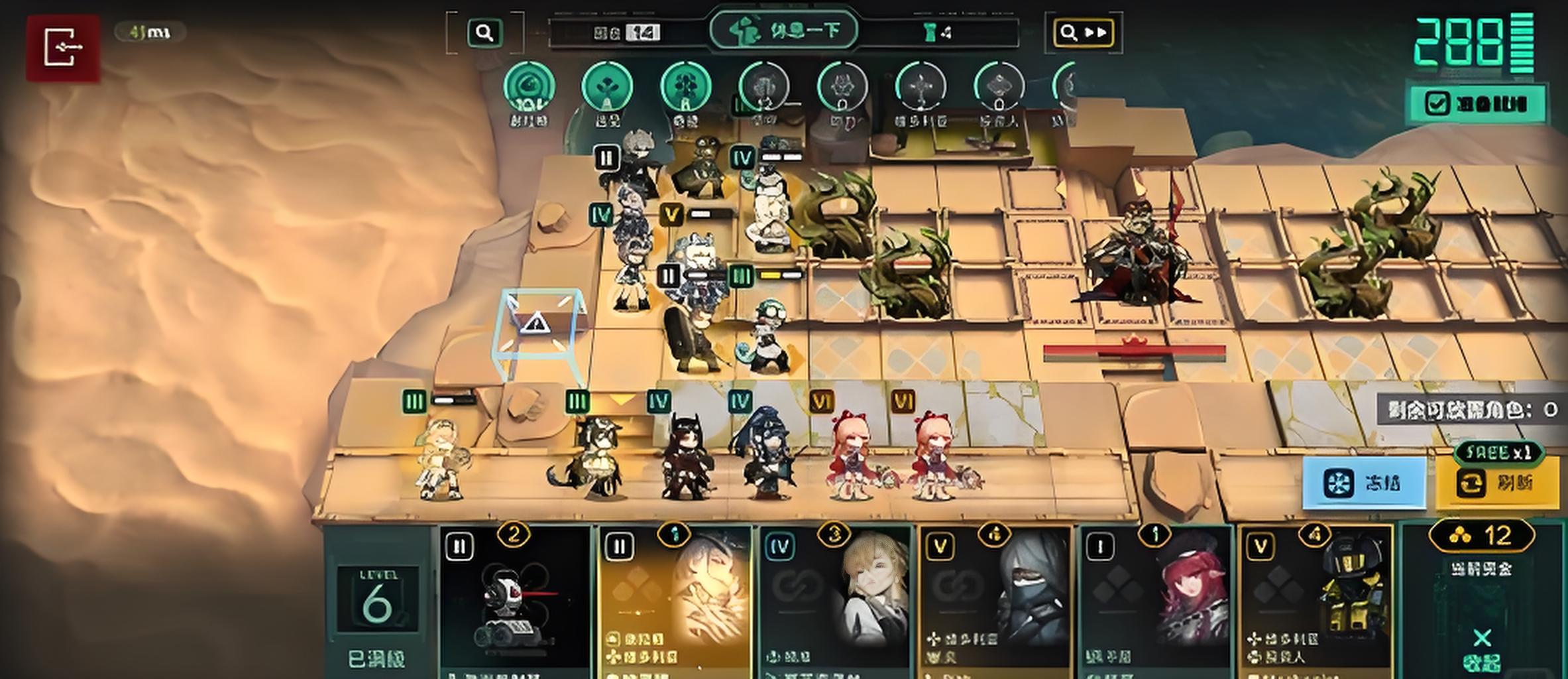 5、挑战BOSS需提前攒足决战输出,依靠决战干员技能清屏,空档期伊桑覆盖80%冰冻效果保障队伍生存。