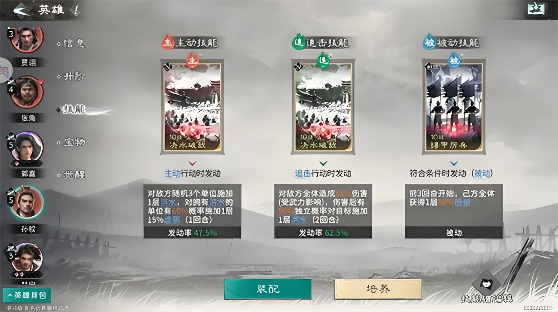 5、战斗时孙权先手控场扰乱敌方属性,郭嘉提供增益续航,甘宁最后终结打击,优先清除敌方关键核心单位。