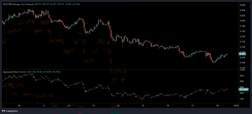 Worldcoin延续下跌趋势,持仓量下降且价格企稳尝试乏力