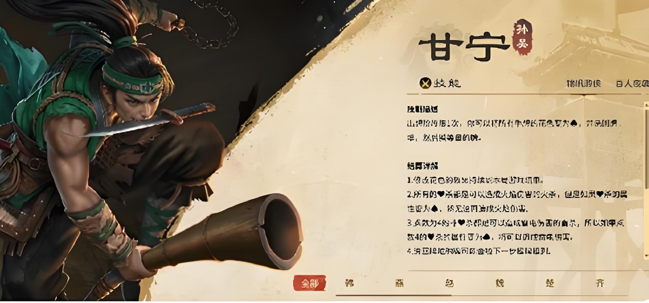 3、甘宁适合以联军身份参战,奇袭技能用黑桃牌弃置敌方一张牌,控场干扰能力强,能打乱敌方节奏,为团队突破城防创造有利条件。