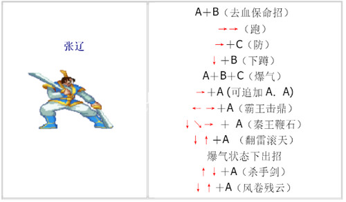 张辽:在选人时用1P输入D↑→ ↓ ←B←↓→↑C↑ ↓←→