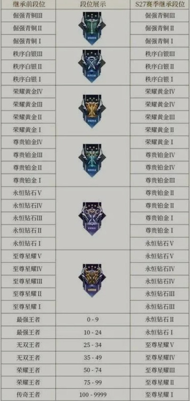 王者荣耀段位等级表 王者荣耀(S33)段位继承表一览