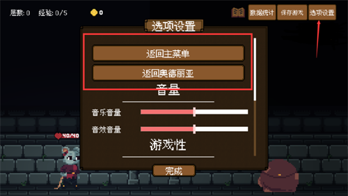 背包英雄中途怎么退出地牢?在《背包英雄》地牢探索中,若需提前退出,只需点击右上角【选项设置】,在弹出的窗口中选择【返回奥德丽亚】即可结束本次探索。请注意:提前退出时背包内未结算的物品将无法带回城镇。
