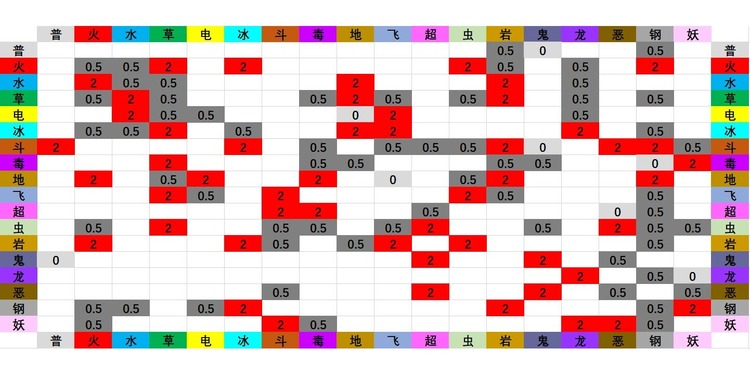 宝可梦克制表大全 宝可梦(神奇宝贝)属性克制表一览