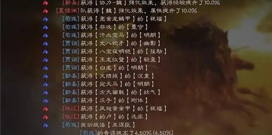 富贵骑,由SP荀彧+贾诩+SP郭嘉组成。能打能抗,非常稳健的体系,让这队稳坐T0。SP荀彧自带战法机鉴先识,具体就不念了太长了,可理解为一个全回合的全体减伤战法,前两回合受到控制有大概率返给敌军,是整个队伍的防御核心。