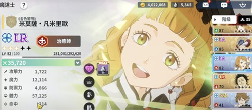 黑色四叶草魔法帝之道米莫萨技能是什么?不少玩家在组建队伍时都会关注这位角色的实战价值。作为游戏中人气颇高的治愈系角色之一,米莫萨不仅拥有SSR稀有度加持,更在技能机制上展现出强大的团队续航能力。她在原作中本就深受喜爱,而在黑色四叶草魔法帝之道的手游设定里,也完美还原了其辅助核心的定位。无论是推图还是挑战副本,米莫萨都能为队伍提供稳定的生存保障。
