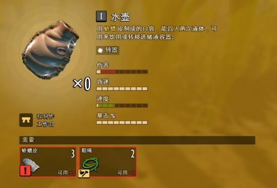 水壶(高级):由蛴螬皮制成,可让您随身携带水。