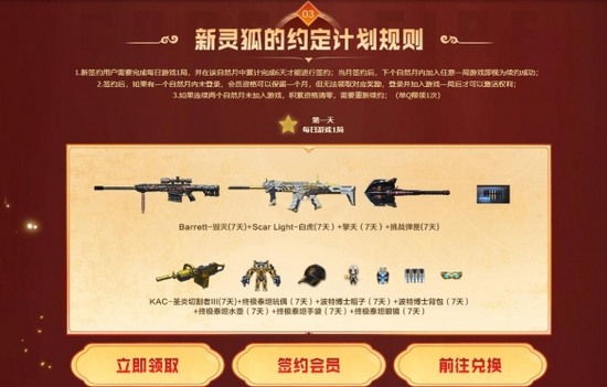 三、新玩家累计签到6天才可以视为签约成功,签约之后进入游戏可以领取限时英雄级武器。