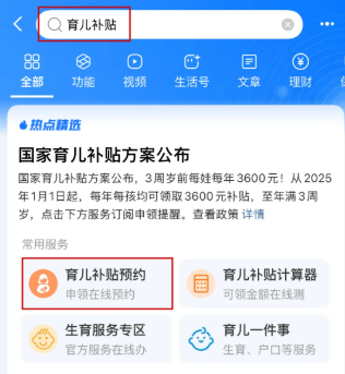 1. 打开支付宝,搜索【育儿补贴】进入服务页面