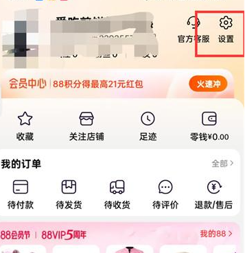 2、在个人中心页面右上角定位齿轮状【设置】图标,点击进入系统设置菜单;