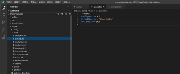 Cyberpunk 2077/engine/config/base 中的“General.ini”文件中添加(小编建议在添加前先备份这个文件,避免产生问题重装游戏,直接将原文件进行覆盖就可以解决了。)