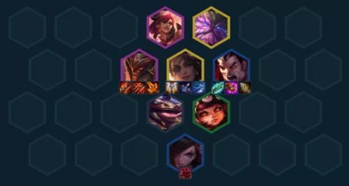阵容组成:北地之怒-瑟庄妮、山隐之焰-奥恩、狂战士-奥拉夫、沙漠玫瑰-莎弥拉、诺克萨斯之手-德莱厄斯、河流之王-塔姆、黑暗之女-安妮、不祥之刃-卡特琳娜(需福星天选)