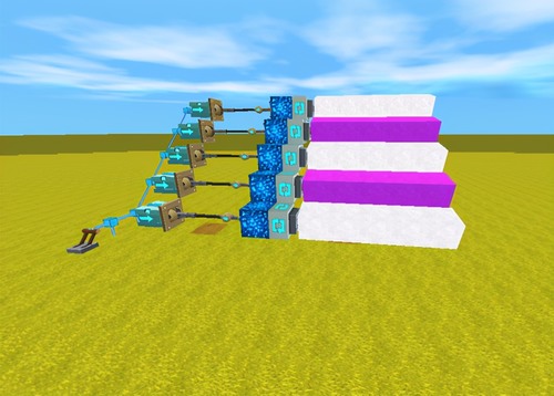 第一种:弹簧升降机最先推出的电梯叫弹簧电梯。这种电梯的原理是利用弹簧的特性起到弹射的作用,然后用开关控制动力。要用的道具是黄金弹簧。在电梯轨道底部安装黄金弹簧,然后玩家可以站在上面打开开关快速上升到最高点。