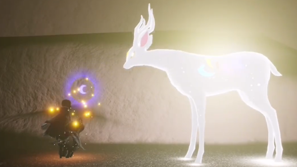 4、依照指引继续前行后,九色鹿将现身助益于我们,赋予我们力量,只需紧随其后,便能找到季节向导,完成首个任务。