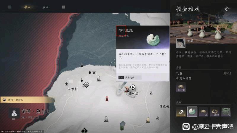 需要注意的是打开小地图点击图标的时候是可以看到这个坐标的投壶奖励的玉珏是哪个文字的,大家做的时候可以注意看下避免重复了