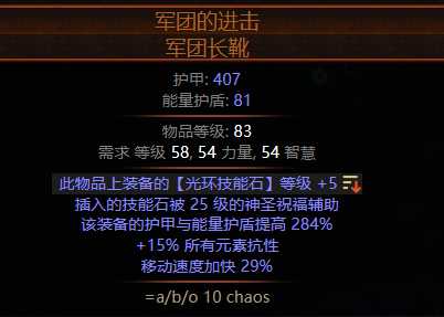 BD的整体思路可以参考之前的惩击流赦罪,通过军团鞋串和善的雷霆和惩击将光环倍率放大来获得额外的超高闪电伤害,