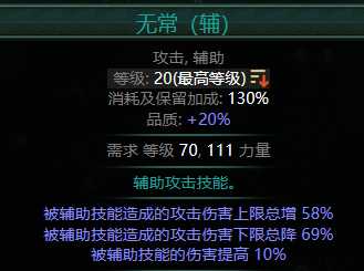 而火灵又是攻击技能,可以连新辅助技能宝石"无常",减最小点伤,加最大点伤。有点类似于瑞斯拉萨的线圈。