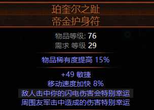 再配合传奇项链珀奎尔之趾,周围友军的闪电伤害幸运,伤害重复判定2次,取最高值,这对伤害区间极大的闪电伤害来说非常厉害。能更加容易摇到更大的数字。