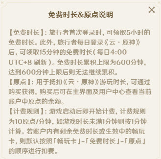 3、【扣费机制】:按实际游戏时长计费,标准为10原点/分钟(不足1分钟按1分钟计算)。系统默认扣费顺序为畅玩卡→免费时长→原点余额。