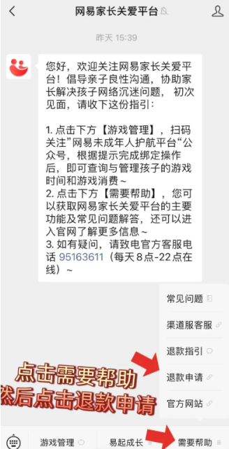 4. 根据客服指引,通过指定渠道访问"网易家长关爱平台"
