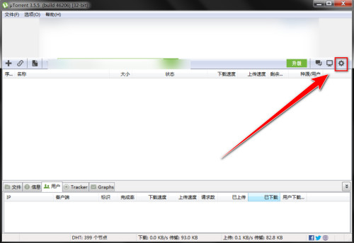 2、在uTorrent窗口中,点击工具栏上的“设置”图标。