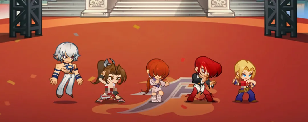 若已积累一定养成深度,可进阶替换为「卢卡尔+不知火舞+大门五郎」:卢卡尔继承高爆发特性并强化生存容错,不知火舞前置施放减防技能,大幅提升后续输出转化率。另一套泛用性强、容错率高的T0组合为「雅典娜+八神庵+不知火舞+特瑞」——雅典娜提供持续治疗与能量回复,保障技能循环;特瑞承担前排抗伤职能,释放减伤与嘲讽效果,为后排创造安全输出环境。