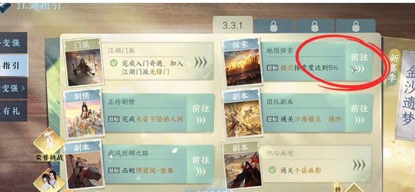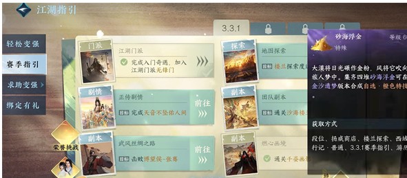 选择赛季指引,可以看到有五个任务,完成任务以后就可以拿到第一个砂海浮金