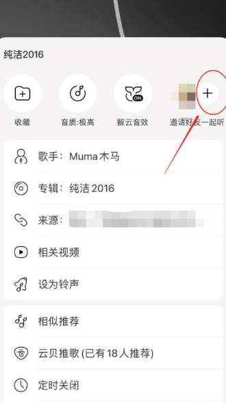 2. 从弹出菜单中选择"邀请好友一起听"选项