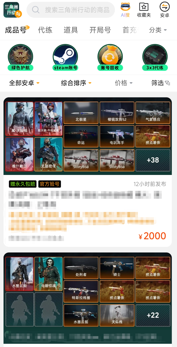 作为阿里巴巴灵犀互娱旗下专注游戏交易服务的核心平台,整合了九游、biubiu加速I器等生态资源,在技术架构、风控体系与客户服务方面具备行业领先能力。平台为所有《三角洲行动》在售账号提供“永久包赔”保障机制——该服务覆盖交易全流程,是当前主流游戏交易平台中唯一实现全域商品兜底赔付的服务方案。依托稳定的系统承载力与严格的卖家资质审核制度,已成为《三角洲行动》玩家首选的账号流通枢纽。安卓用户可通过官方渠道下载客户端,iOS用户访问官网即可使用网页版完成全部操作。