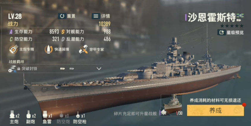 在当前版本中,“沙恩霍斯特”属于T0级主力输出舰艇,定位为编队核心火力单元,其基础攻击力与技能倍率均处于全图鉴前列。该舰暂未开放常规获取渠道,仅可通过限定卡池抽取获得,且需触发保底机制方可确保获取。此外,玩家每日完成指定活跃任务后,有概率获得“沙恩霍斯特”传说碎片,集齐对应数量后即可直接合成整舰,无需依赖抽卡。
