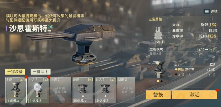 战舰养成体系涵盖等级提升、模块解锁、无人机配置及舰长适配四大模块。前期升级主要依赖碎片积累,随等级提升,所需碎片量呈阶梯式增长。主线关卡与PVP竞技场均为稳定碎片来源,其中PVP对战除提供战舰碎片外,还可掠夺对手部分稀有资源,用于加速科技研发与产能建设;即使战败,亦可复盘敌方阵容结构,针对性调整己方编队逻辑与站位策略。