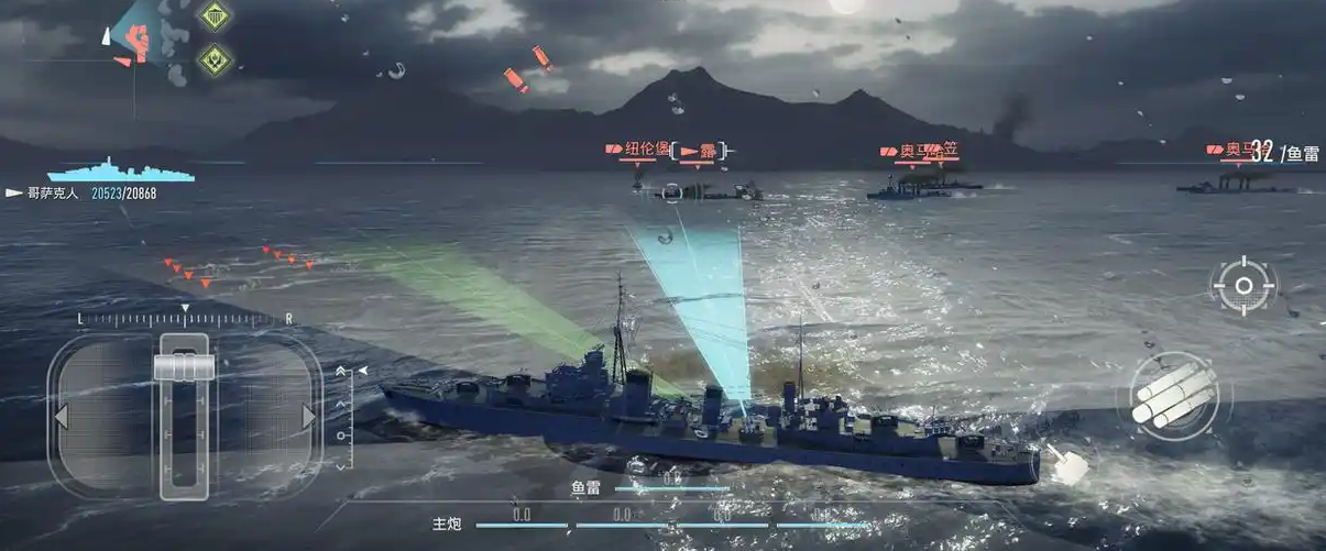 但需注意,得梅因并非全能型战舰。其庞大舰体直接导致转向半径大、加速度偏低,在机动性维度处于明显劣势;同时舰体未配置防雷突出部,水下防御结构薄弱,对鱼雷命中极为敏感。面对高机动性驱逐舰的贴身突袭,尤其在狭窄海域或伏击点位,极易因规避不及而遭受毁灭性打击。因此实战中应避免单舰冒进,建议由己方驱逐舰先行侦察、清场,控制雷区安全距离,并依托舰队阵型保持合理站位。