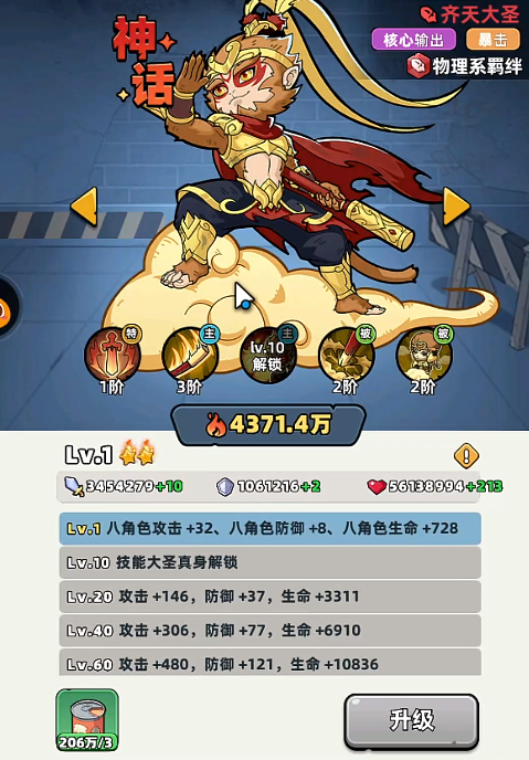 随着暗黑骑士在游戏里的等级变得更高,角色整体的攻击,防御和生命数值也会不断增加,玩家可以在游戏里多去选择一些特定的装备培养角色,让黑骑士在游戏里能有更优秀的表现,作为一个输出类型的角色,挑战过程中角色组队非常自由,关于角色的队伍搭配不会有过多限制,想让输出能力更优秀的玩家可以选择齐天大圣,作为游戏里的核心输出角色,能利用物理系羁绊给对方带来暴击伤害,两个成员的等级一样,通过互相配合,可以让队伍战力更强。