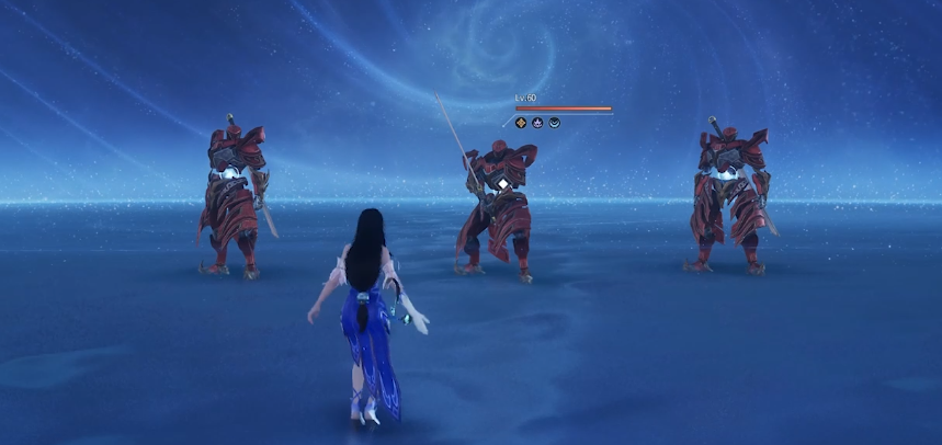 该组合兼顾前排承伤与远程压制能力。伽罗拥有稳定的范围控制与持续输出机制:“纯净”展开后形成可控领域,提升自身暴击率并具备击飞效果;“静默”可释放高伤害单体箭矢,附带击退与击飞判定;“渡灵”切换长弓形态后,连续射击逐步提升攻速,暴击时额外触发追魔箭,实现多段复合伤害。铠则承担团队前排职责:回旋技能投掷飞刀,命中后弹射返程并恢复生命;“风暴”提供突进+强化普攻双重收益;“锋刃相抵”具备格挡判定,成功招架后衔接极刃反击,打出两段爆发;大招开启魔铠状态,显著提升整体输出强度。实战中建议优先由铠吸收BOSS关键技能,待其进入破绽期后迅速切换伽罗进行集中火力输出。
