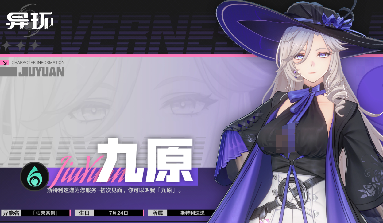 九原定位为高爆发灵属性输出型角色。普攻为五段双枪连击,过程中可积攒最多2颗“玫约子弹”;第五段命中目标后自动缔结“玫约”。滞空状态下点击普攻,将在落地时触发一次下落攻击,造成灵属性伤害,且伤害值随下落高度线性提升。长按普攻则进入锁定射击模式,若持有子弹则自动消耗并连续射击,优先攻击已缔结契约的目标。“情报猎手”技能可位移穿越战场,对命中的敌人造成多段相属性伤害,并强制将其拉入掌控区域,成功命中后额外获得4颗自当子弹,同时缔结新契约。“终局清账”为大范围高速机动技,期间对路径上敌人持续扫射,最终引爆造成高额灵属性范围伤害,并使所有已缔结契约的目标进入“伤害清算”状态,承受额外结算伤害。