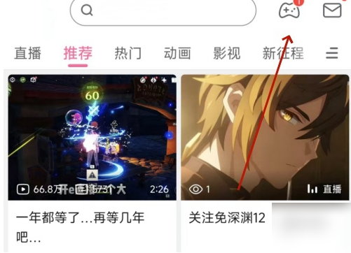 进入B站主页后,首先需要点击导航栏右上角的游戏中心图标。