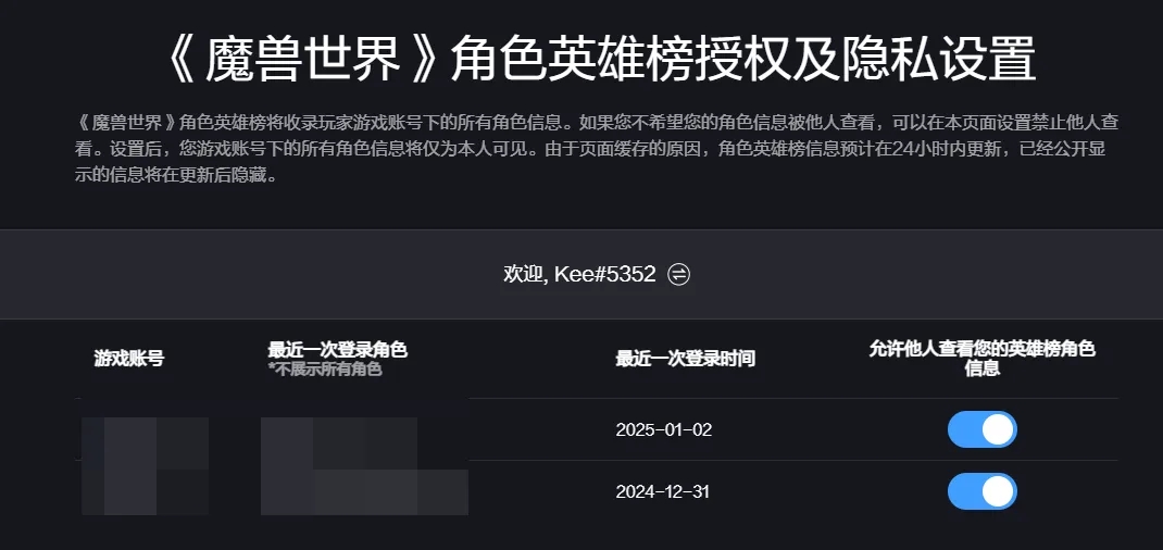 新增隐私设置功能,默认开启角色信息展示,用户可自行关闭。
