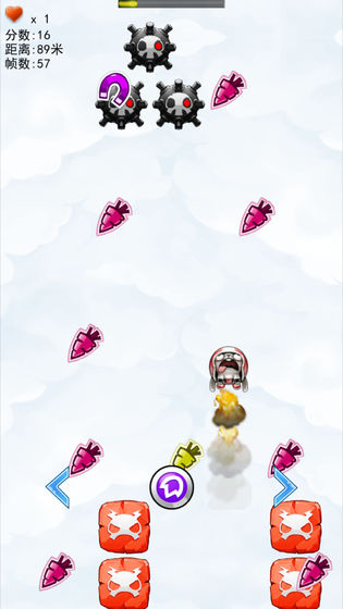 兔子冲上云霄安卓版是一款竖版俯视视角的动作跑酷游戏,游戏采用了Q萌的卡通画面,带给玩家最简单的游戏玩法,只需要躲避各种炸弹吃到萝卜就行,喜欢这款游戏的小伙伴就快下载试试吧。