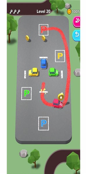2、一根手指点击屏幕,左右前后移动车辆安全顺利的停到停车位中;