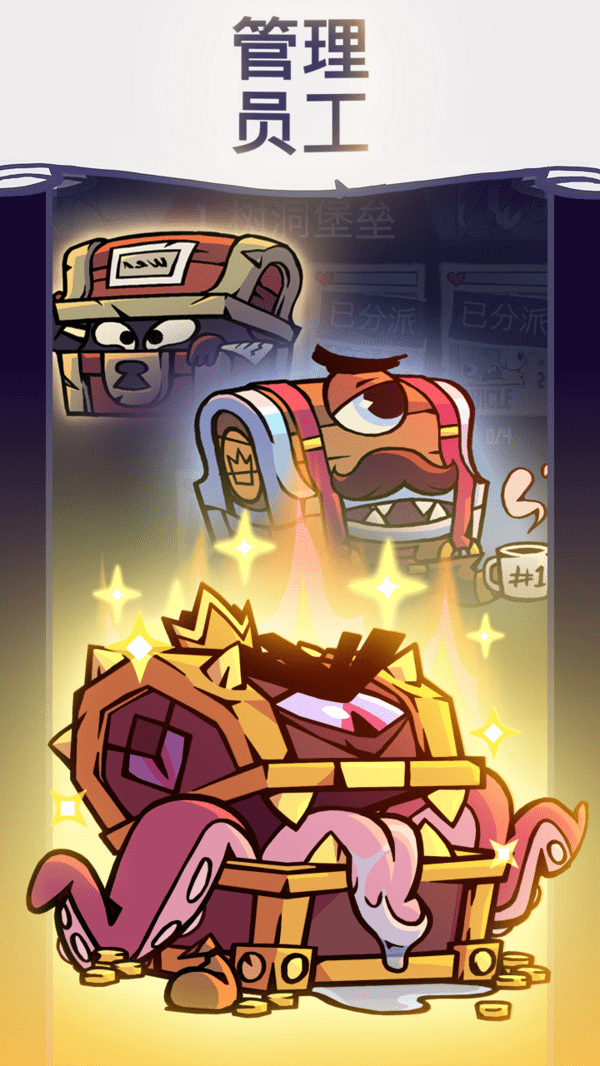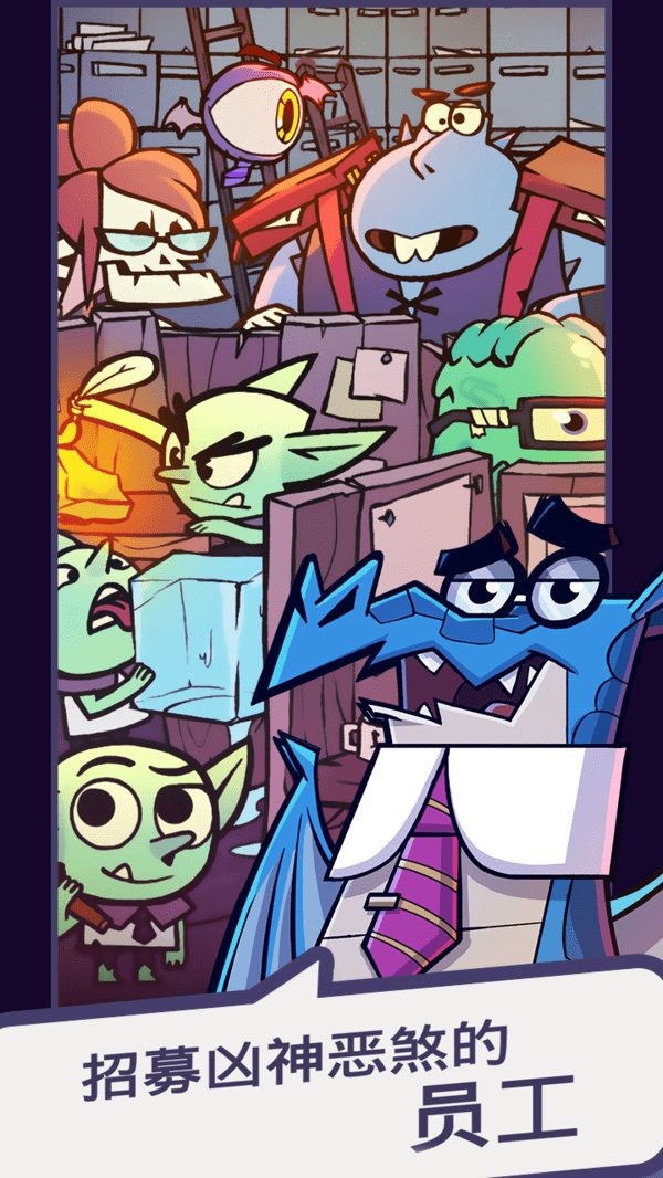 地下城与公司是一款美式卡通风格的模拟经营类手游,玩家扮演公司的运营经理,通过挖矿和掠夺的方式不断获得更多的利润,招募各式各样的技工为你工作和抵抗恶霸的来袭,保护你的公司财产。