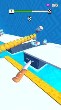 2、随着不断切割芝士卷变得越来越长,前进的过程中就能撞倒罐子。